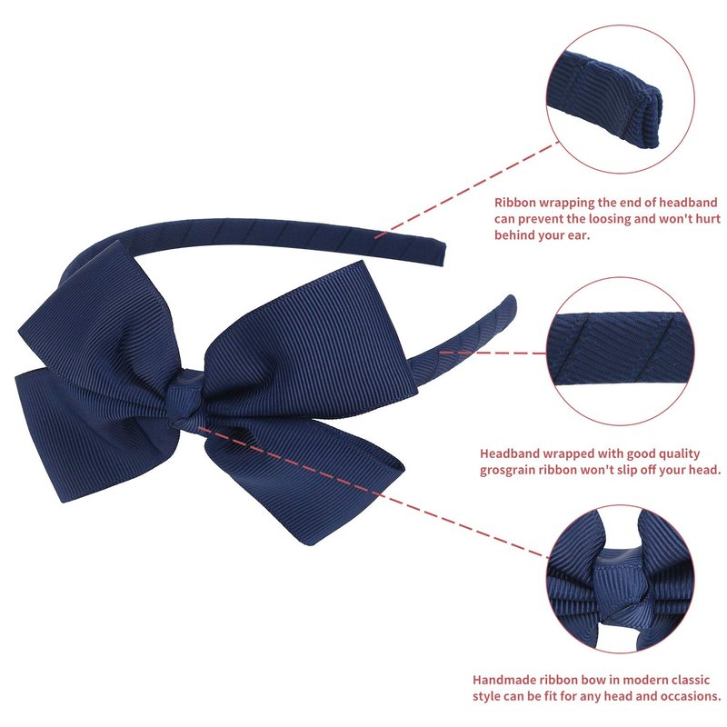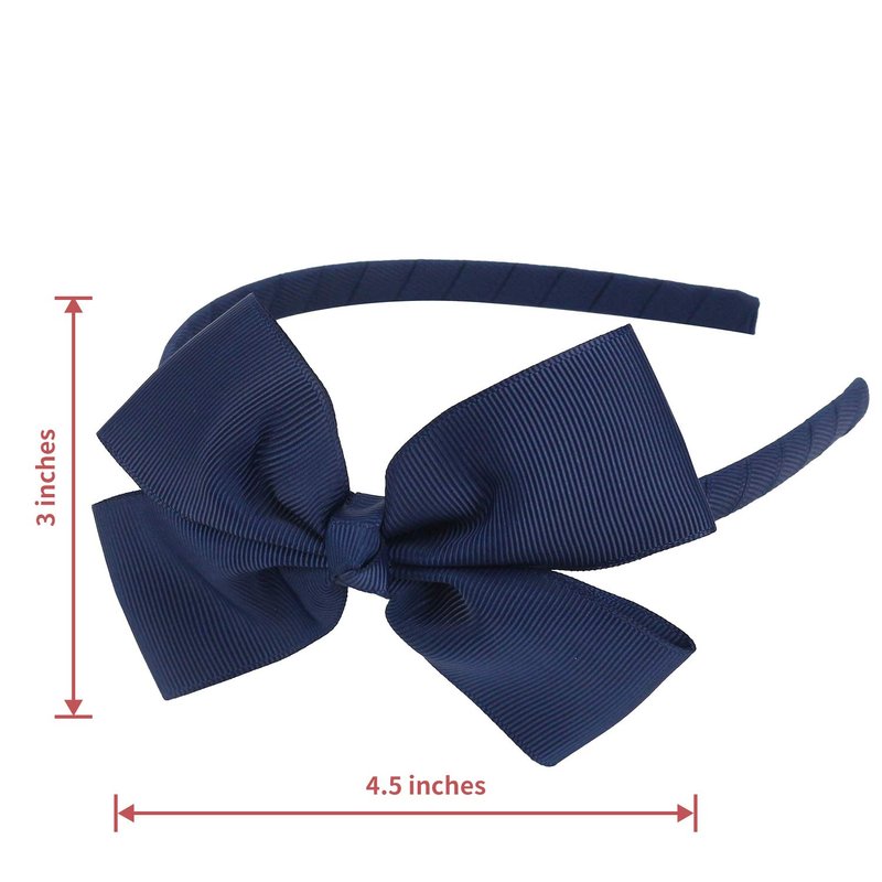 - 💙️ Package comes in: 1 PCs NAVY grosgrain bow headband, approx size: 4.7" x 5.3" (L*W), bow size: 4.5" x 3" (L*W). Medium boutique bow on a grosgrain covered hairband. The size " large " indicates the bow size and not the hairband size. Our ribbon used is OEKO-TEX standard approved and the hairband contains no metal.