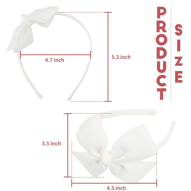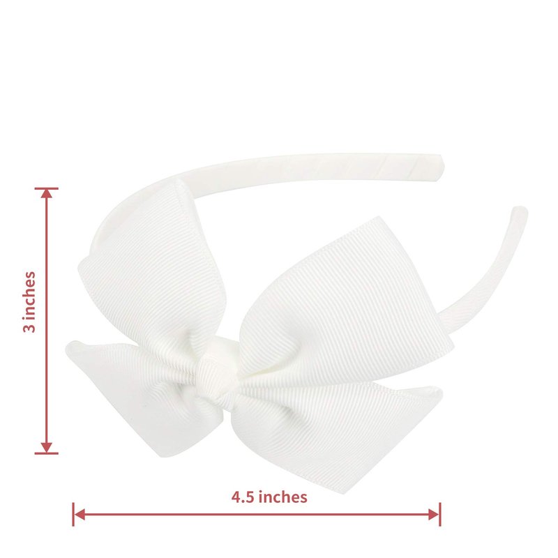 - 🤍️ Package comes in: 1 PCs WHITE grosgrain bow headband, approx size: 4.7" x 5.3" (L*W), bow size: 4.5" x 3" (L*W). Medium boutique bow on a grosgrain covered hairband. The size " large " indicates the bow size and not the hairband size. Our ribbon used is OEKO-TEX standard approved and the hairband contains no metal.