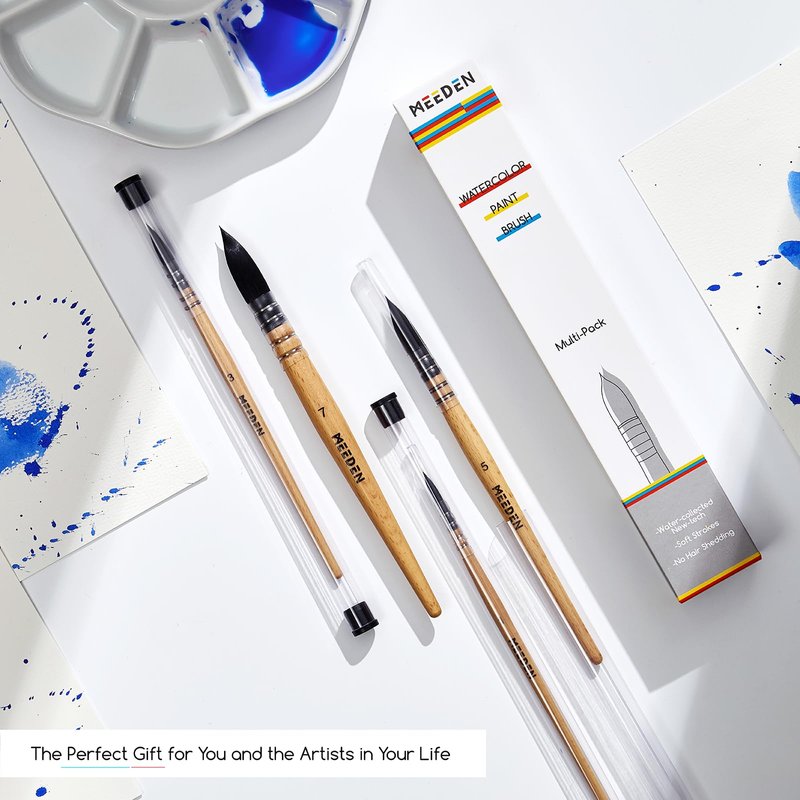 MEEDEN Watercolor Brushes Professional - 4 Pack Synthetic Squirrel Hair Artist Paint Brushes Set with Beech Wood Handle Great for Artists Hobbyists