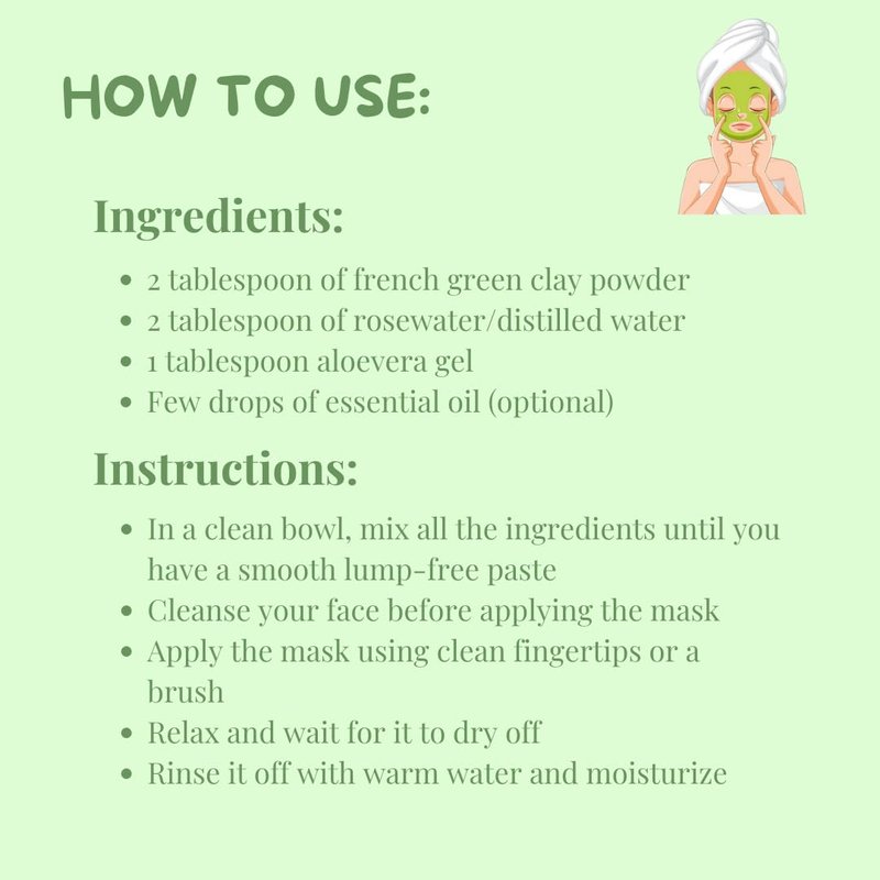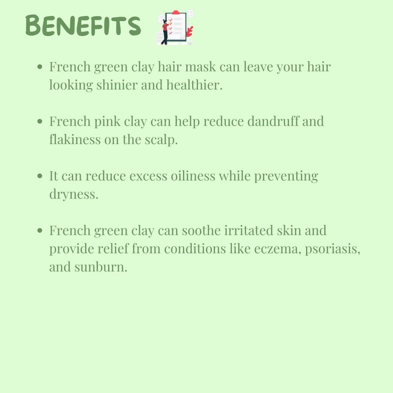 - French Green Clay is one of the most absorbent clays. It draws the impurities and excess oil from the pores leaving the skin smooth and supple.