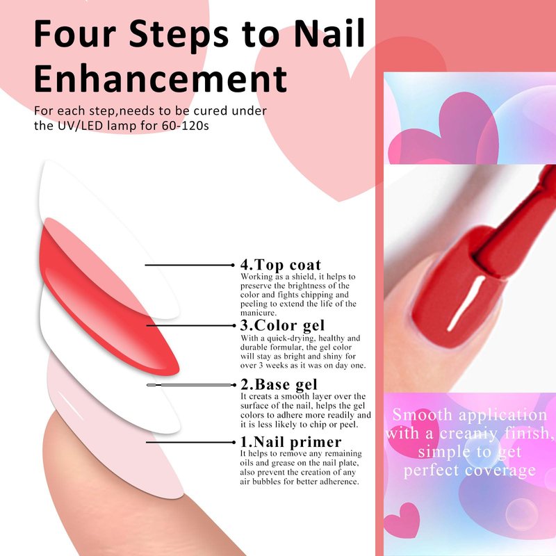 - EASY APPLICTION - This UV gel nail polish has good ductility and fluency make it easy to use even for beginners. This soak off UV/LED lamp gel nail polish needed to be cured under UV lamp (2-3 mins) or LED lamp (30-60 secs)