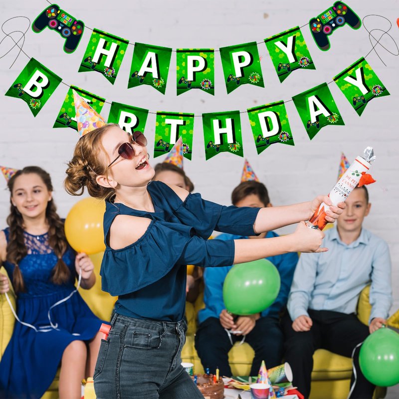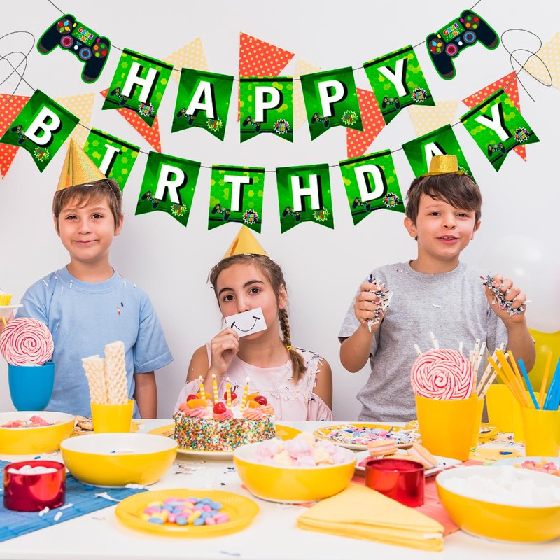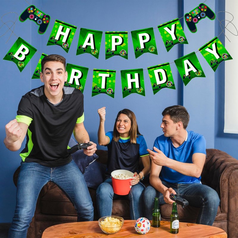 MEETINGU Game Happy Birthday Banner, Gaming Birthday Party Decorations for Boys Kids Game Themed Party Supplies(Green)