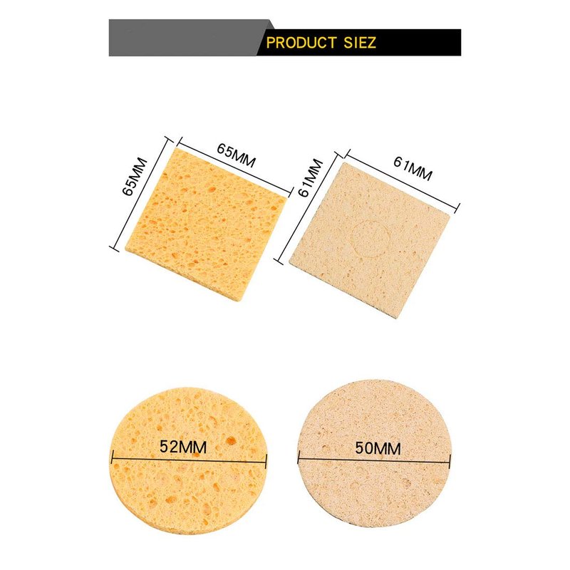 - Package includes: 6 x 60x60x2mm Soldering Iron Cleaning Sponge; made of thickened sponge. Expand to 6mm after soaking in water