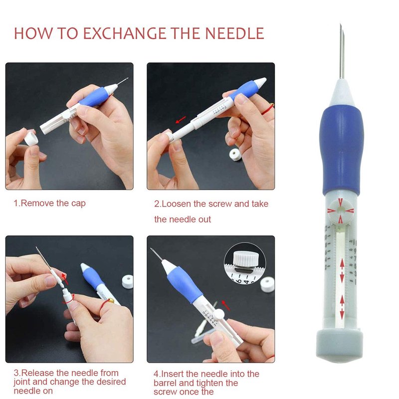 - It includes three replaceable needles of different sizes, practical