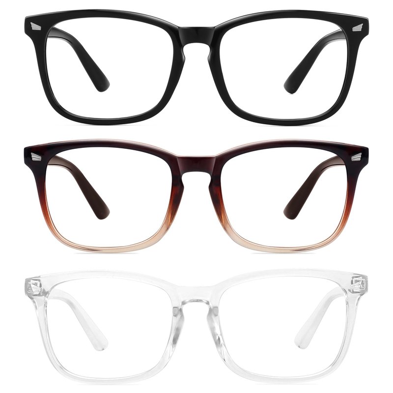 MEETSUN 3-Pack Blue Light Blocking Glasses, Anti Eye Strain Headache (Sleep Better), Computer Glasses UV400 Lens (Black + Brown Gradient + Clear)