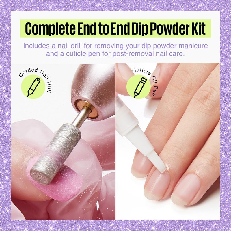- 📦【Comprehensive Dip Powder Kit】This kit is equipped with everything you need for salon-quality nail art: 32*7.5g color powder, 4*10ml liquid (base coat/activator/glossy top coat/brush saver), 2*powder liquid brush replacement, ,1*upgraded dip powder recycling tray, 1*nail brush, 1*cuticle pusher, 1*100/180 nail file(130*19mm). Additionally, the kit comes with a 20,000 RPM portable electric nail drill machine, committed to providing a salon-level experience.