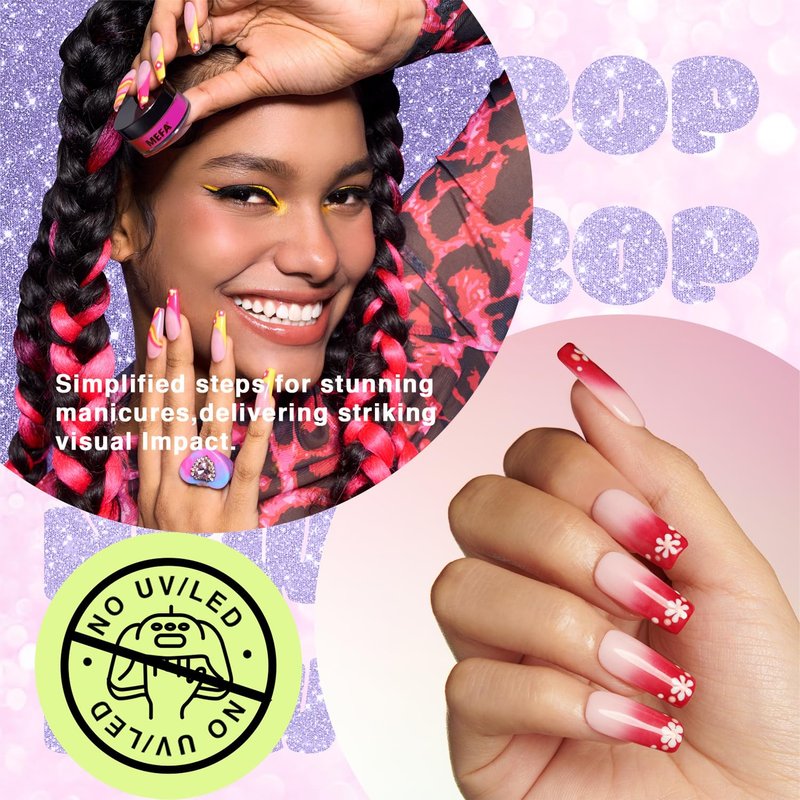 - ⏳【Quick Air Drying & Extended Durability】MEFA doesn't require an LED nail lamp for curing, drying swiftly, and being gentle on the skin, thereby preventing skin darkening and nail damage. With its long-lasting formula and resistance to chipping and peeling, MEFA ensures that your nail art stays stunning for approximately 28 days when applied correctly.
