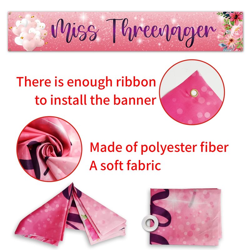 - 💟-Size:Little Miss Threenager banner measures 9.8 x 1.6 ft/298.7x48.8cm,which is suitable for the indoor and outdoor decoration.