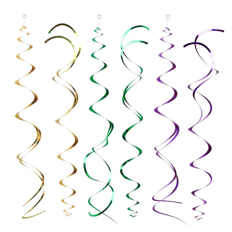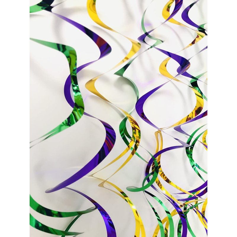 Mefuny Pack of 30 Purple Gold Green Hanging Swirl Decorations Mardi Gras Sparkly Streamers Foil Swirls for Ceiling Decorations Party Supplies