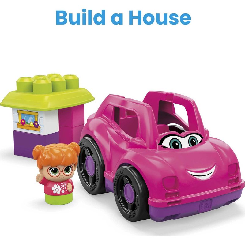 Mega BLOKS First Builders Toddler Building Blocks Toy Set, Catie Convertible with 6 Pieces and Storage, 1 Figure, Pink, Ages 1+ Years