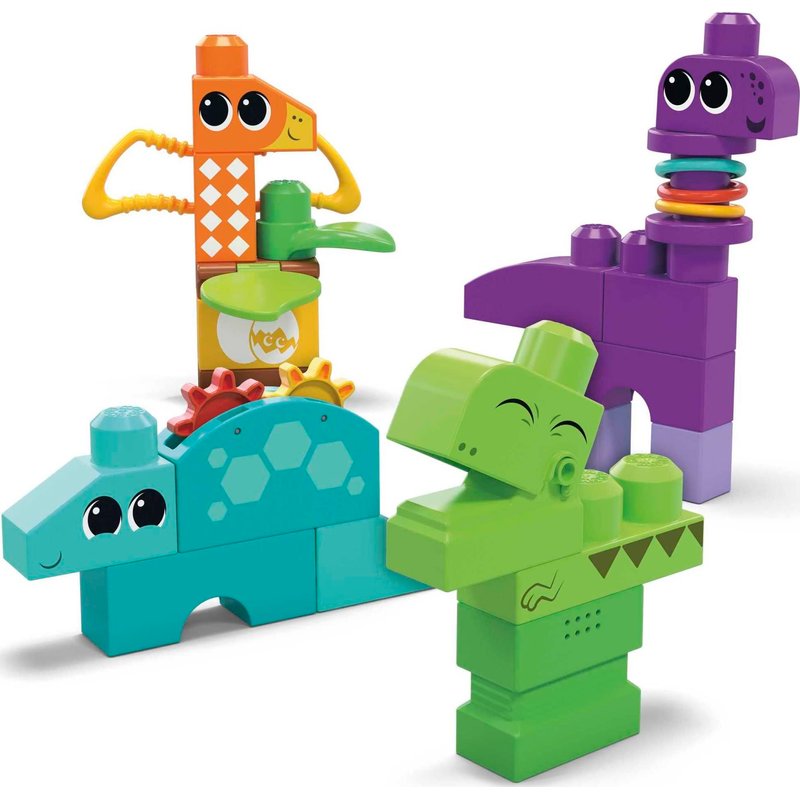 Mega BLOKS Fisher-Price Toddler Building Blocks Toy Set, Squeak ‘n Chomps Dinos with 24 Pieces, 4 Buildable Animals, Ages 1+ Years