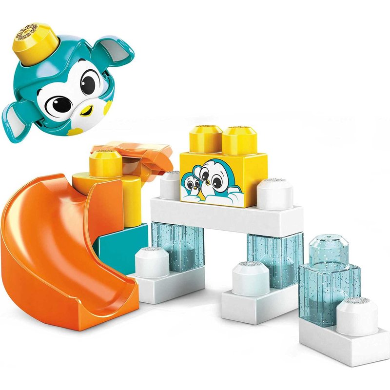 Mega Bloks Peek A Blocks Penguin Slide with Big Building Blocks, Building Toys for Toddlers (14 Pieces)