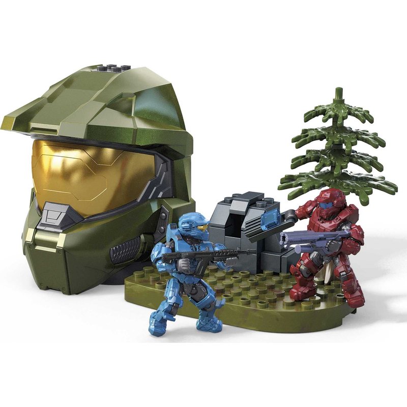 - Highly collectible green Spartan helmet building set inspired by the Halo Stockpile multiplayer mode, with outdoor setting and power seed crucible