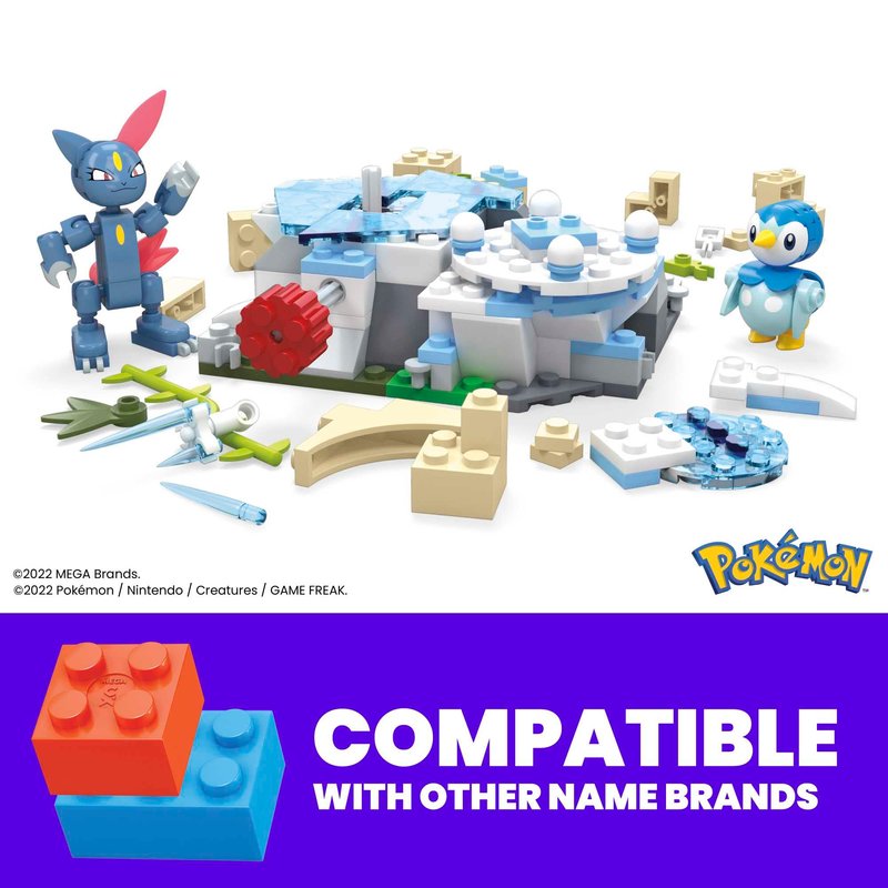 MEGA Pokemon Action Figure Building Toys, Piplup and Sneasel's Snow Day with 171 Pieces and Motion, 2 Poseable Characters, for Kids