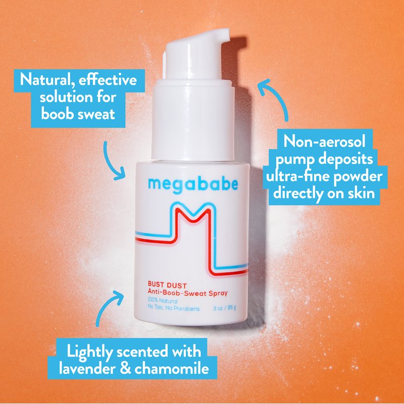 Megababe Sweat Absorbing Body Powder - Bust Dust | with Applicator Pump | Talc-Free, All Natural | 3 oz