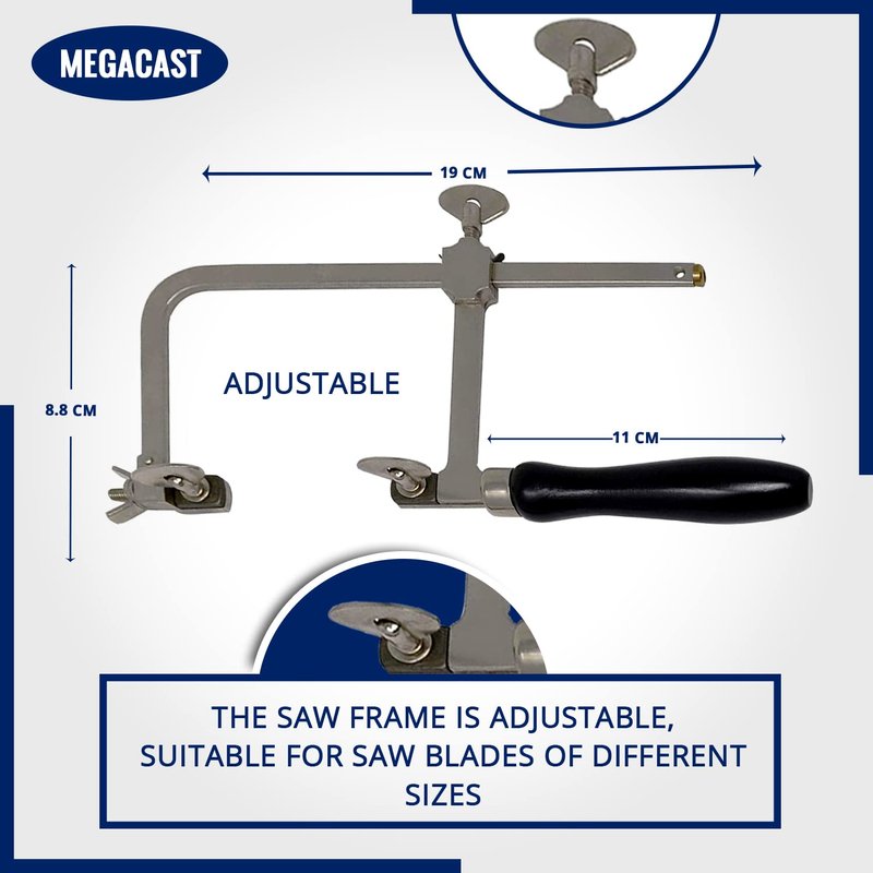 Megacast GERMAN STYLE JEWELERS SAW FRAME with 144 ASSORTED JEWELERS SAW BLADES