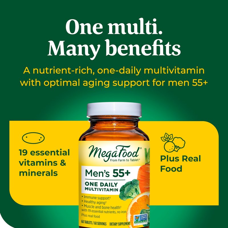 MegaFood Men's 55+ One Daily - Multivitamin for Men with Vitamin B12, Vitamin C, Vitamin D & Zinc - Optimal Aging & Immune Support Supplement - Vegetarian - Made Without 9 Food Allergens - 90 Tabs