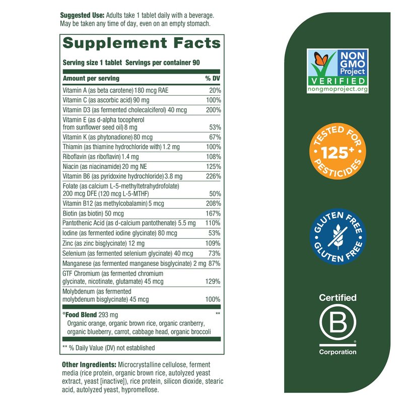 - All of our multivitamins are made with food-paired vitamins and fermented minerals, and can be taken any time of day, even on an empty stomach. 1 tablet daily