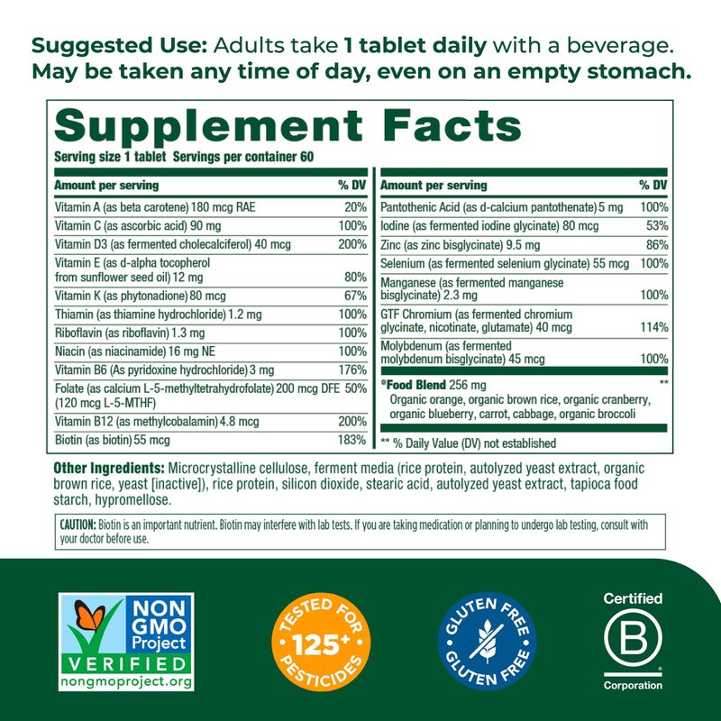 - All of our multivitamins are made with food-paired vitamins and fermented minerals, and can be taken any time of day, even on an empty stomach. 1 tablet daily