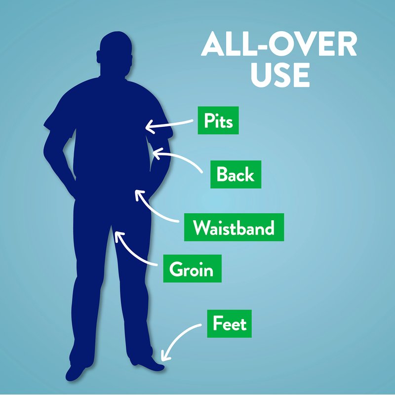 - STAY DRY ANYWHERE - Sprinkle Dry Guy anywhere body sweat is an issue - directly on armpits, groin, or in clothes/shoes