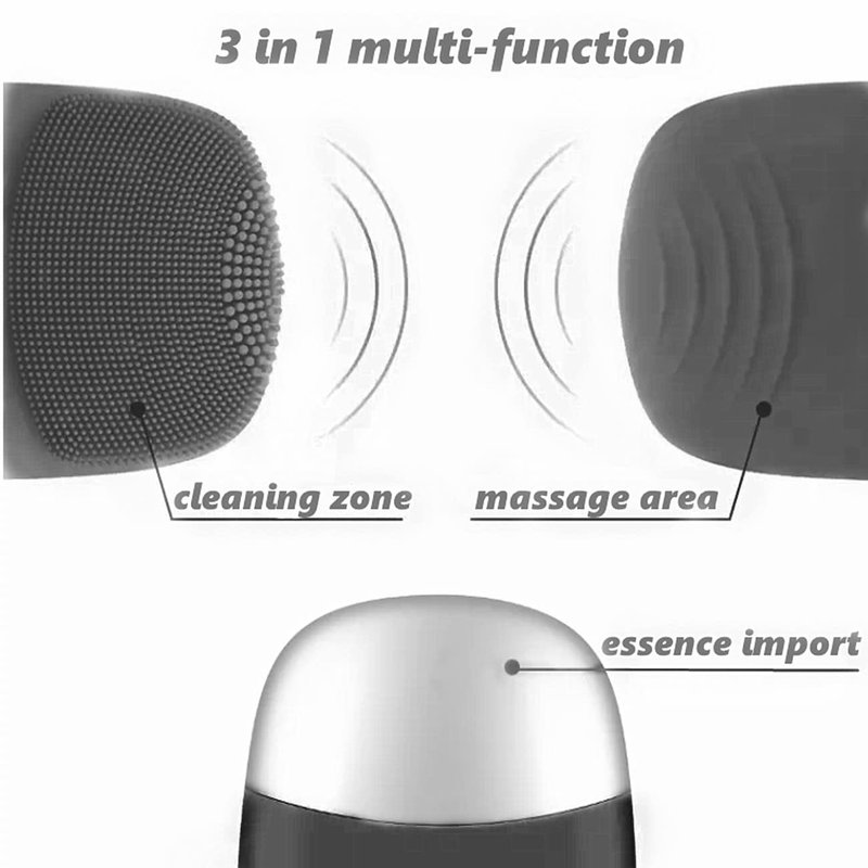3 kinds of silicone brush areas provide different cleaning effects for the whole face,The bottom of the brush can effectively help absorb skin care products,The back of the brush can be used as a massager for the entire face to relieve fatigue, tighten the skin and reduce fine lines.