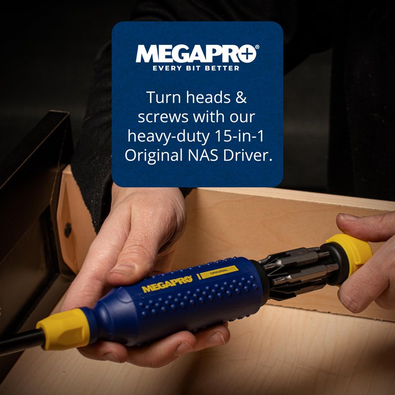 - Screw Everything All at Once: Switch between bits effortlessly with our popular Megapro Original 15 in 1 screwdriver! Often imitated, never duplicated—this compact screwdriver features a patented retractable cartridge with 7 double-ended bits for Phillips, Star, Square, Flat heads, and a ¼” Hex shaft.