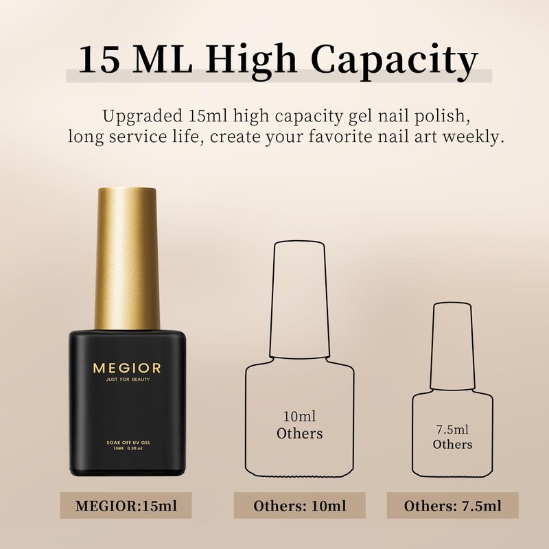 - EASY APPLICATION and LONG-LASTING: MEGIOR gel nail polish is long lasting for 4 weeks with perfect shine under properly buffed your nail bed and applied base coat & top coat.