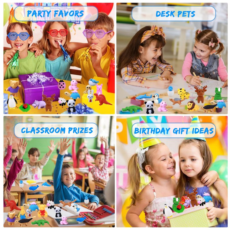 - Erasers For Kids Size: Ideal Size for Collectors: Each desk pet eraser is approximately 1" x 2", which is perfect size for pencil cases, collectible tins and for children to hold and play with