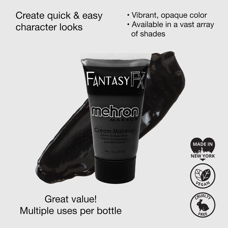 - ADVANCED FORMULA: Mehron’s Fantasy FX formula glides on like cream makeup but since it is water-based, it doesn’t have to be set with powder and removes easily with soap and water.