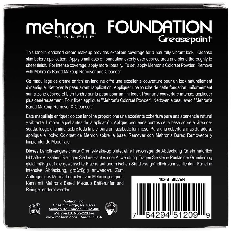 Mehron Makeup Foundation Greasepaint | Stage, Face Paint, Body Paint, Halloween Makeup 1.25 oz (38 g) (SILVER)