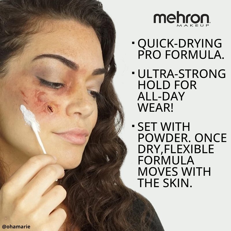 - PROFESSIONAL: Mehron's Liquid Latex is a professional, vegan formula that can be used as an adhesive to attach appliances to the skin, to seal wax, or to create textured effects like aged or peeling skin. True professional grade, trusted by Hollywood and Broadway pros since 1927.