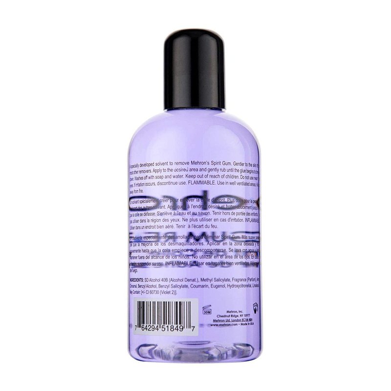 - PROFESSIONAL FORMULA: A specially developed solvent to remove Mehron’s Spirit Gum and other SFX makeup products. A must-have when using any Spirit Gum adhesive. True professional grade, trusted by Hollywood and Broadway pros since 1927.