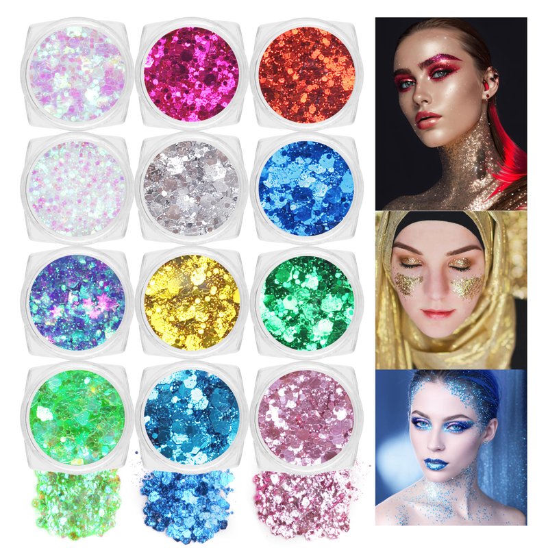 - Multiple Colors Face Glitter Palette:12 jars of chunky glitter gel with different colors in a palette,including red body glitter,blue body glitter,pink body glitter,light purple body glitter,gold body glitter,green body glitter,clear white body glitter,silver body glitter,light blue body glitter,lime green body glitter and purple body glitter,multiple colors can meet your need to match any makeup finish