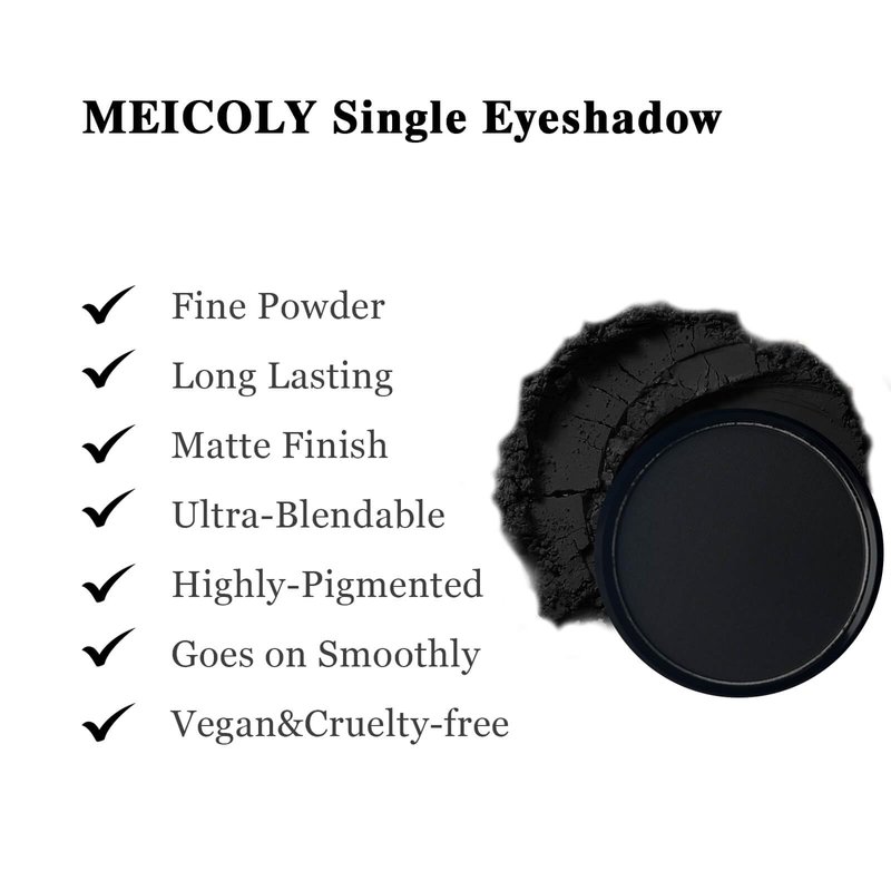 MEICOLY Black Eye Shadow with Mirror,Matte Single Eyeshadow,Pressed Powder Eyeshadow Makeup,Matte Shade Eyelid Color Eye Makeup for Women,High Pigment,Long Wear,Waterproof,Natural,Intense Color