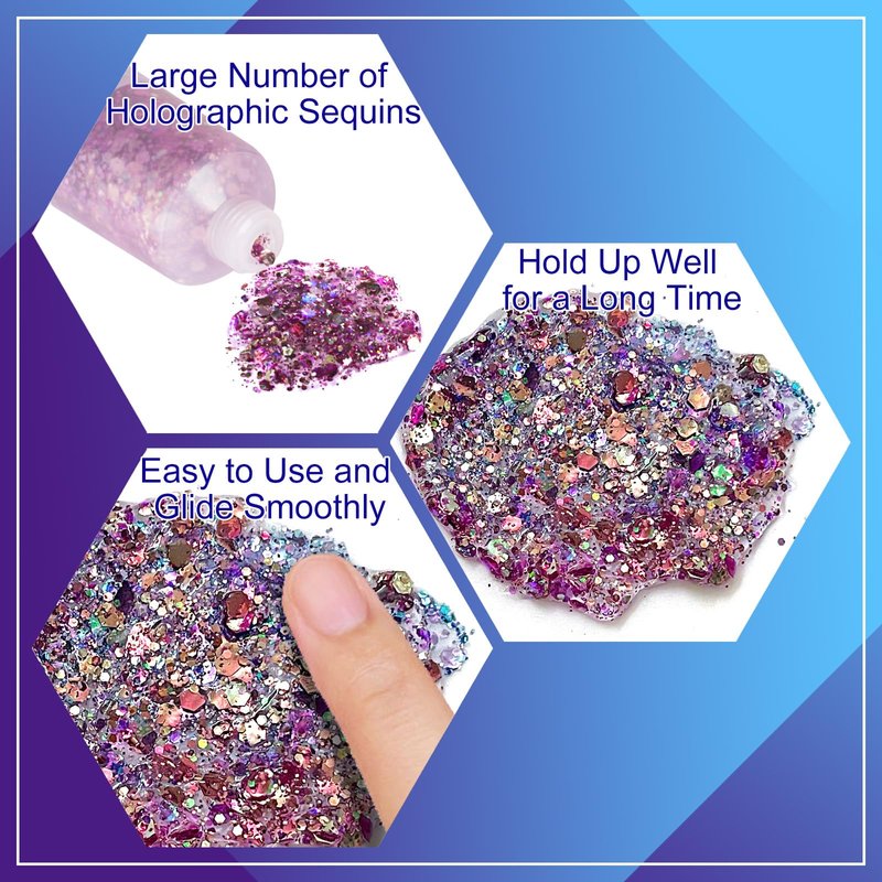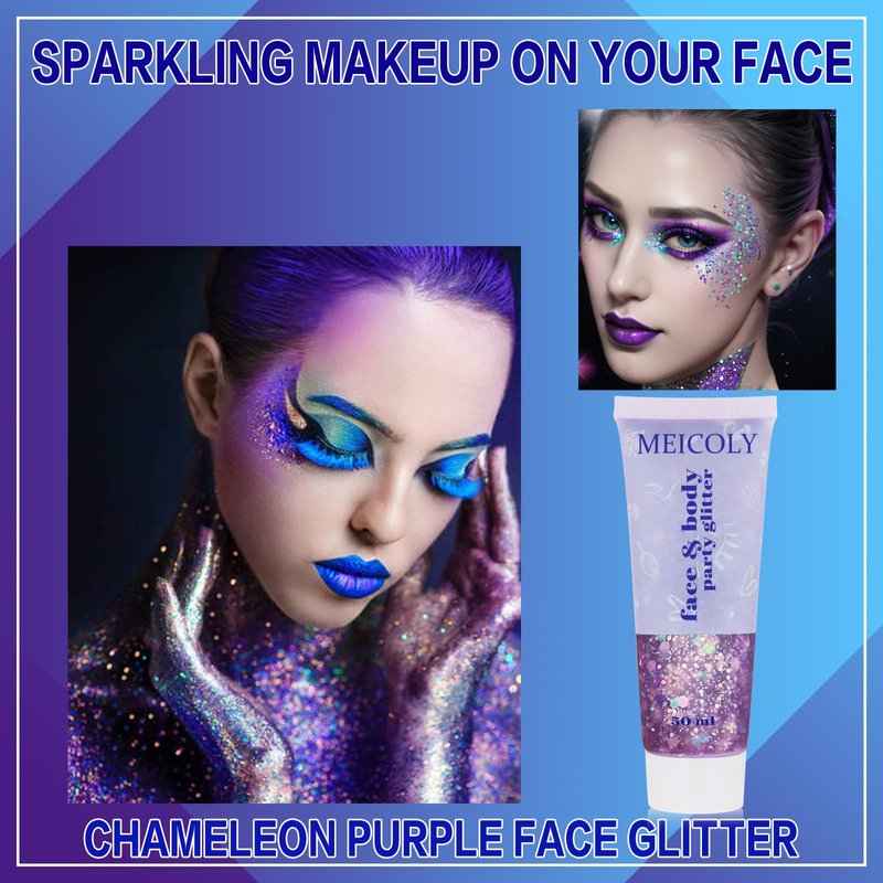MEICOLY Chameleon Purple Body Glitter,Chunky Glitter Face Paint,Color Changing Mermaid Face Glitter Gel,Holographic Glitter Sequin for Face Body Hair,Halloween Festival Party Glitter Makeup,50ml