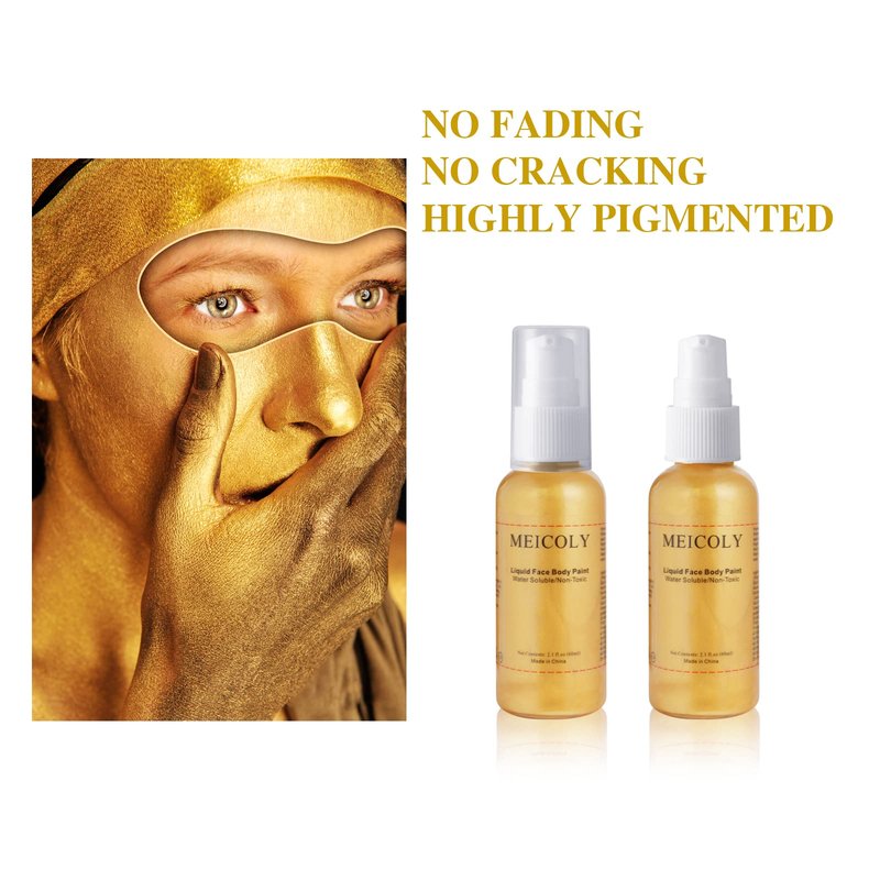 - GOOD FOR FULL BODY PAINTING --- High pigment and good coverage.Water based makeup for full body painting,shake well paint and apply with fingers or brush to skin directly(no need to add water).Sponge made of SBR,not suit for this water solution gold silver paint,it is will absorbed some paint;Also good as gold highlight of your collar bone for an outfit