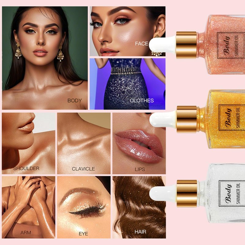 - Elegant and Refreshing Scent: Enhance your glow with a subtle, fresh scent that complements the shimmering effect. Our body shimmer oil not only looks great but also smells delightful.Our sparkling shades are designed to show up beautifully on all skin tones, adding an elegant touch to your look.