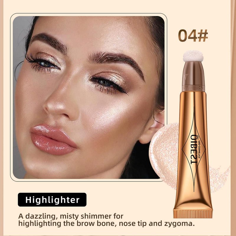 MEICOLY Liquid Highlighter Beauty Wand,Highlight Stick with Cushion Applicator,Lightweight Super Silky Cream Face Illuminator Highlight Make up,04 Pearl White