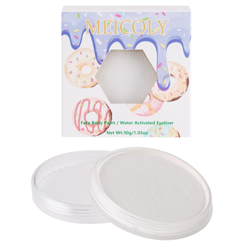 MEICOLY Neon Face Paint,Glow in The Dark Body Paint,Fluorescent Water Activated Face Paint for Adult and Children,Halloween Single Color White Face Paint Water Based Split Cake,1.05oz,White/UV Blue