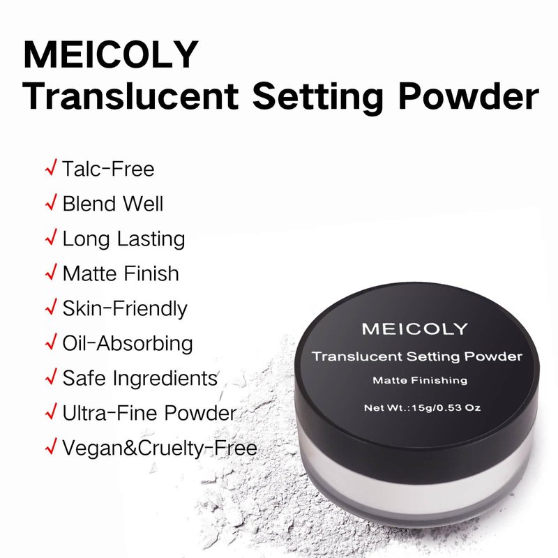 - Long-lasting Makeup Hold: MEICOLY setting powder ensures your makeup stays flawless all day long without moving, even under the harshest stage lights.works well to set makeup, no touch-ups needed, as your look remains intact from morning till night.
