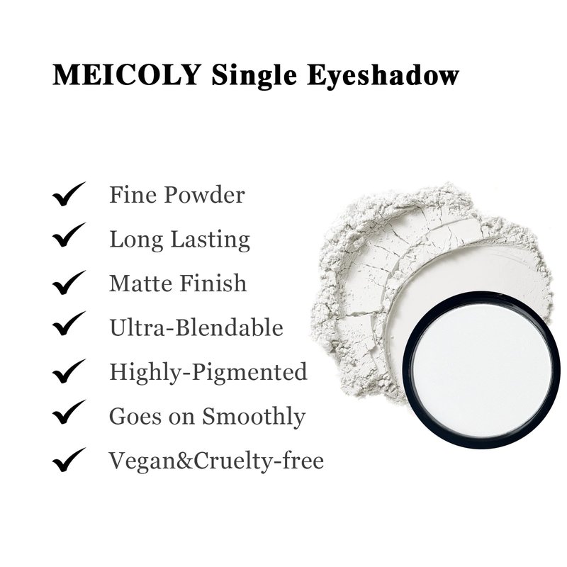 MEICOLY White Single Eyeshadow with Mirror,Matte Eye Shadow,Pressed Powder Eyeshadow Makeup,Matte Shade Eyelid Color Eye Makeup for Women,High Pigment,Long Wear,Waterproof,Natural,Intense Color