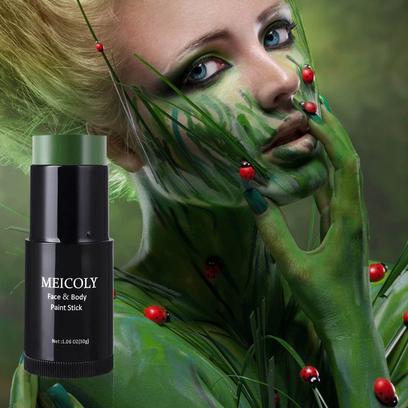 MEICOLY Witch Green Face Body Paint Stick(1.06 Oz),Hunting Camo Stick,Cream Gamora Hulk Face Paint,Waterproof Green Eye Black for Sports,Halloween Facepaint SFX Christmas Cosplay Makeup,Green