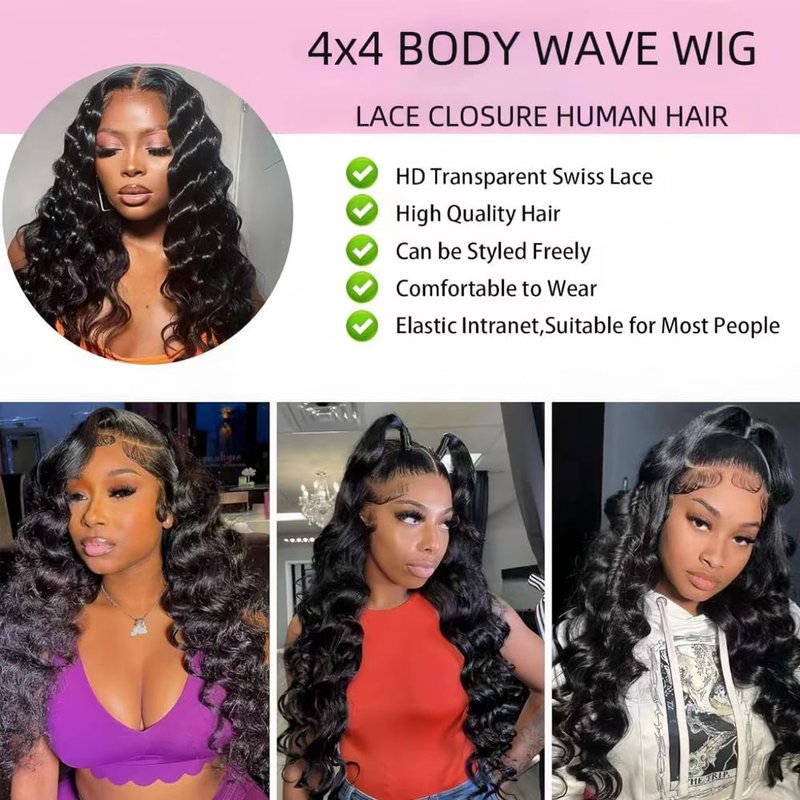 Meidisi Glueless Wigs Human Hair Pre Plucked Pre Cut Body Wave Lace Front Wigs Human Hair Pre Plucked Wear and Go Glueless Wig 4x4 Closure 28 Inch