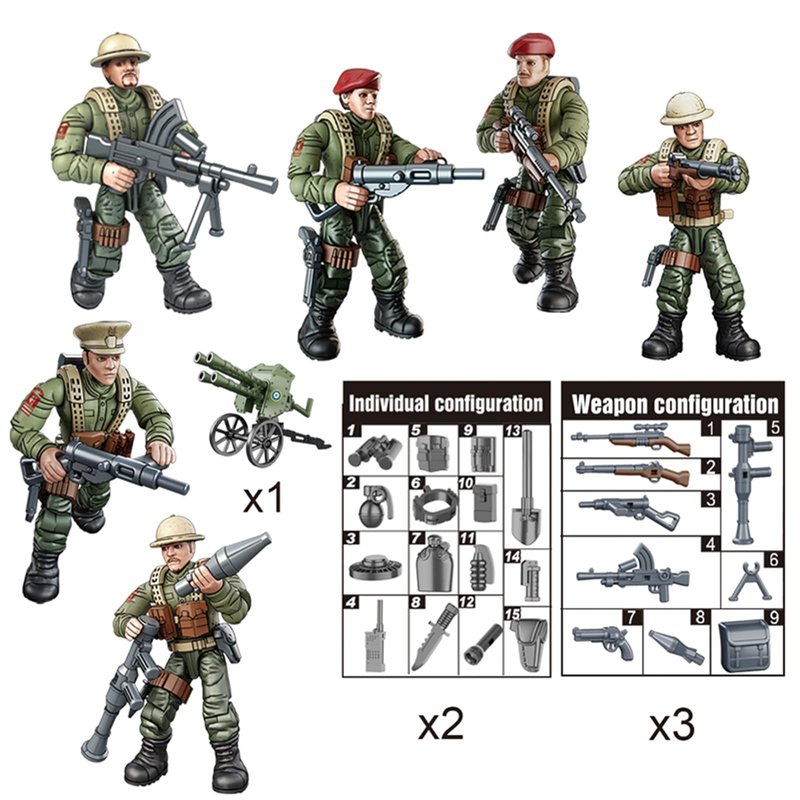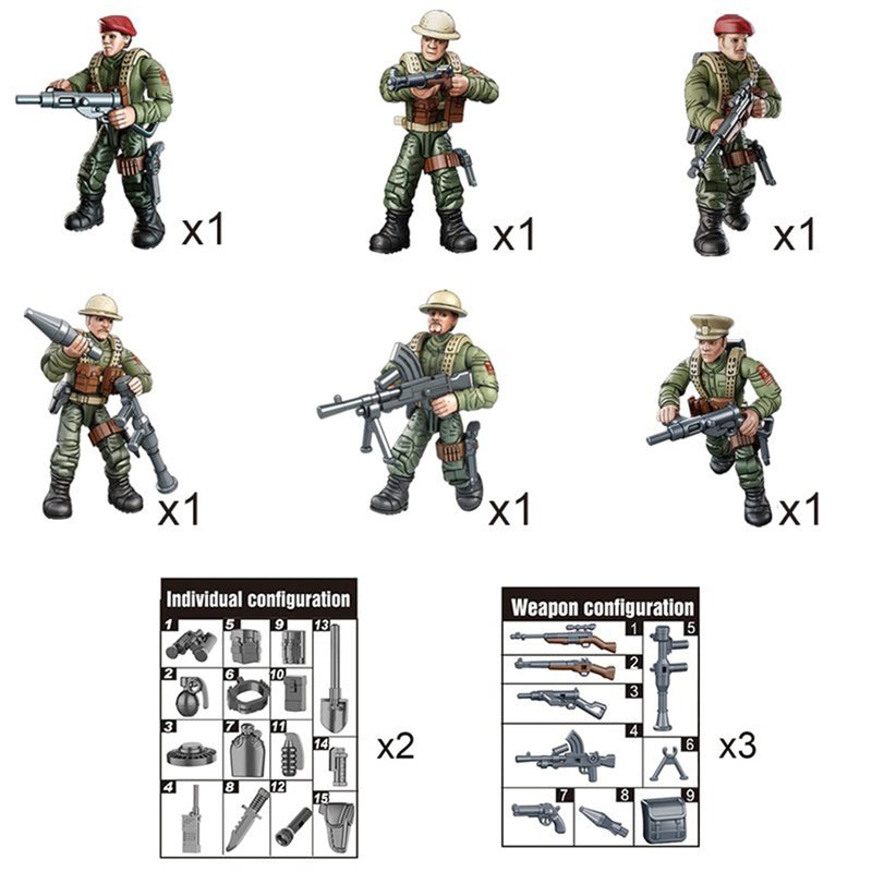 MEIEST 6 PCS Mini WWII Soldier Military Action Figures, Army Model Building Block Toys with Multiple Military Weapons Accessories,Party Favors Set for Kids (British Army)