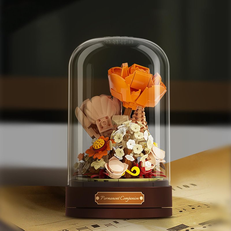 - Music Box: Turn the music base,the artificial flower will rotate 360 degrees with the music, and all details will be displayed(No battery required).The flowers bouquet building set is equipped with a base and dust cover, which can be well insulated from dust and very easy to take care of.