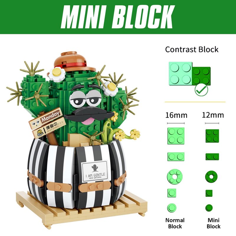 - Cactus Bonsai Building Kit : Based on the actual flowers as the prototype design.Each element of the bulbous cactus is displayed in a miniature building block model. The upper and lower layers are assembled to gradually discover the hidden design details. The product is mini size about 25% smaller than standard brick.Recreate a cactus bonsai with building bricks. Making your life full of nature.