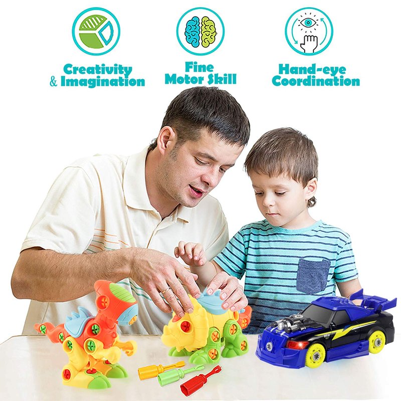 - Endless Fun: The tool set is a perfect fit for little hands. Kids can easily take apart and assemble the T-Rex, Triceratops and Car with the help of the dinosaur instruction and story book. The take apart dinos can help children learn about what the dinosaurs looked like