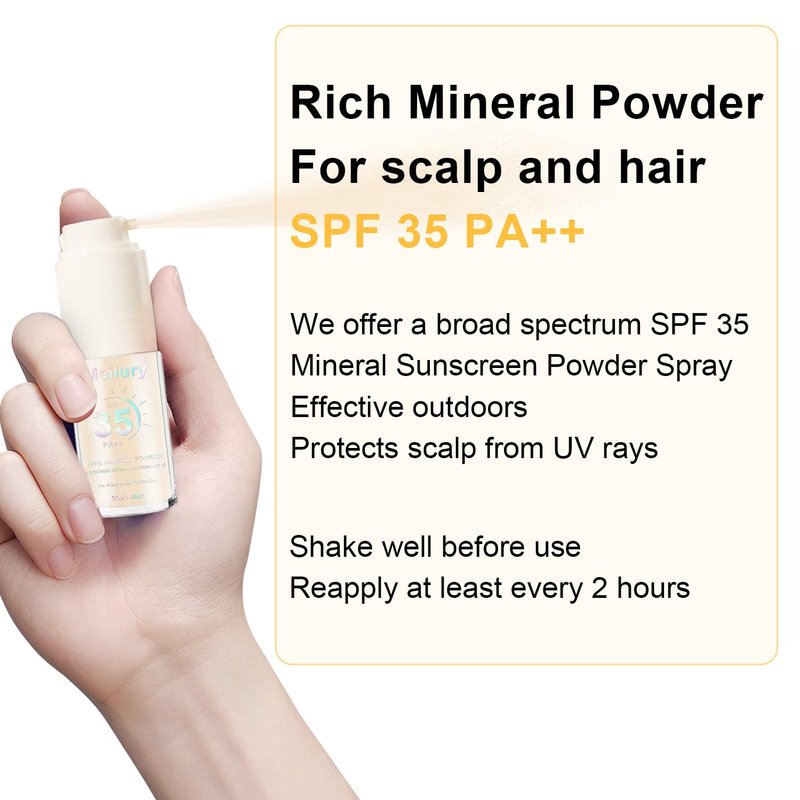 Meilury Mineral Sunscreen Powder, for Scalp & Hair, 0.71 Oz. SPF 35 PA++, Scalp Sunscreen Powder, Broad Spectrum UV Protection, Lightweight, No-Greasy, Cruelty-Free Formula