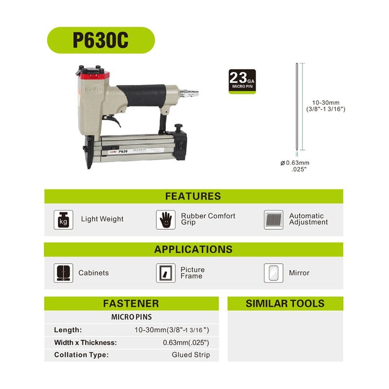 - [Wide Applications] Compatible with meite P630C(asin: B00XKX1OK4) pin nailer and other brands of pneumatic or electric 23 gauge pin nailer. Perfect for intricate woodworking, model making, trim and molding work, and arts and crafts. These nails offer the least wood splitting and are ideal where a finished appearance is important.(Please note the compatibility of the staples with the staple gun before purchasing.)