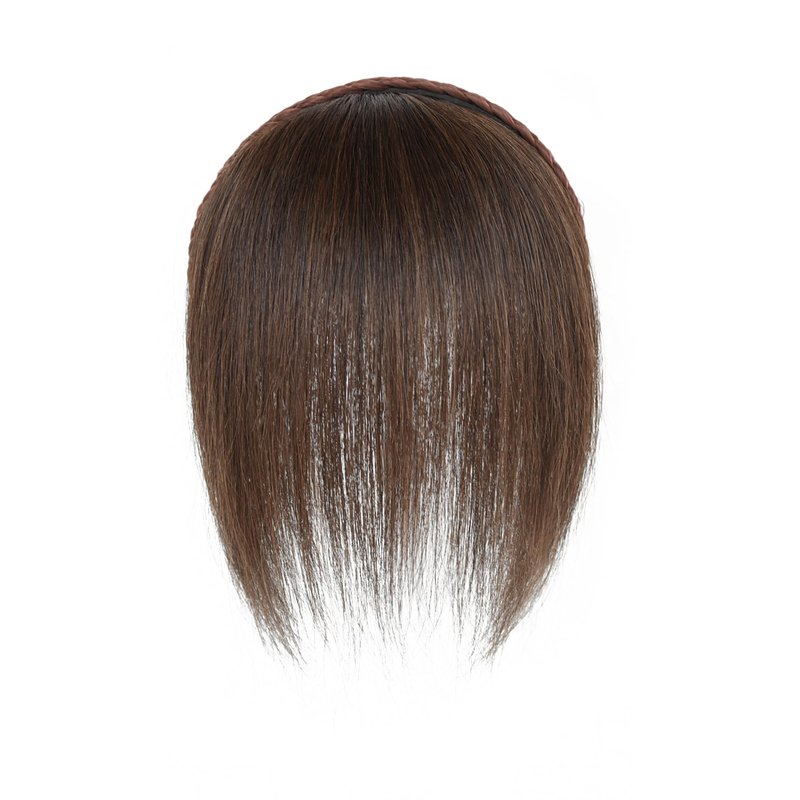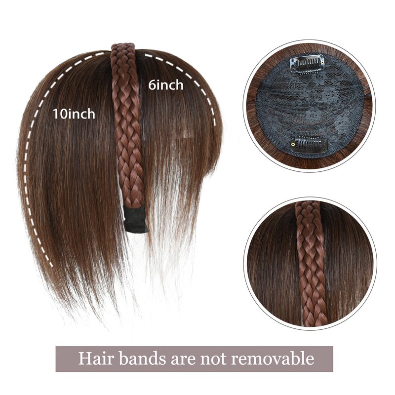 Meiverah 10" Straight Hair Piece With Twist Braid Headband for Women, Human Hair Clip In Topper Hair Extension With Bangs (Medium Brown)